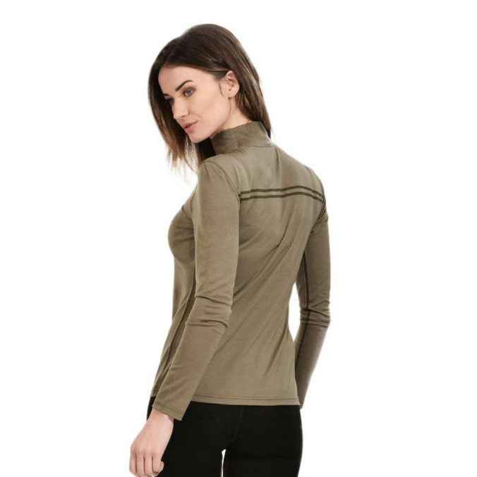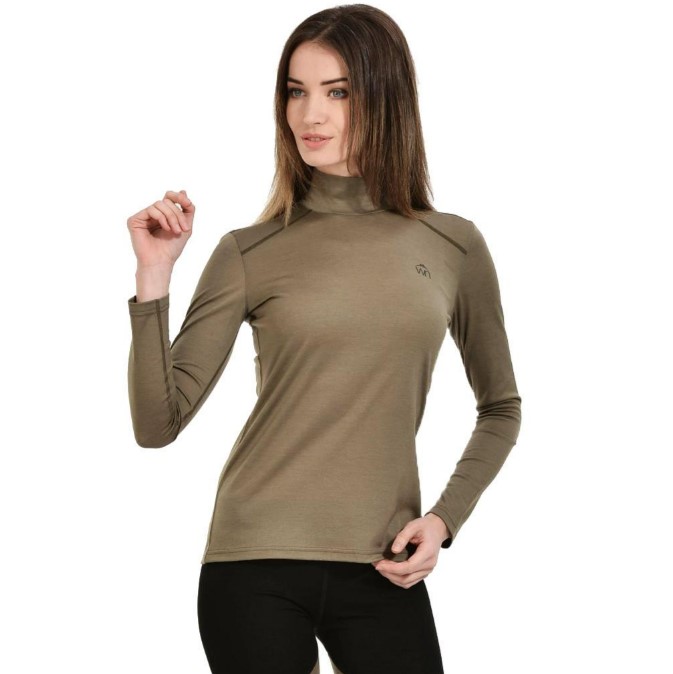 Дамска блуза с висока яка и дълъг ръкав от мериносова вълна. С нея получавате комфорт, топлина и още от предимствата на мериното. Естествено дишаща, попиваща влагата и унищожаваща миризмата материя.